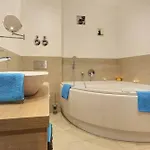 Das Badezimmer ist mit einer Badewanne und einer Dusche ausgestattet. Ein Wäschetrockner und Handtücher werden ebenfalls zur Verfügung gestellt.